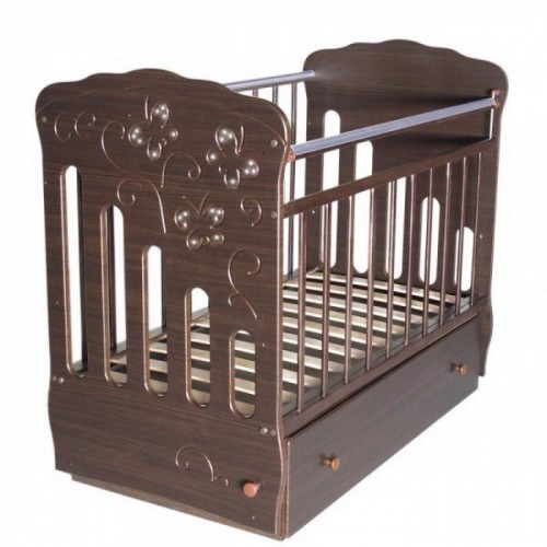 Детская кроватка "Бабочки" для новорожденных изготовлена из высококачественных экологически чистых и гипоаллергенных материалов. Спинка данной модели украшена резьбой  и аппликацией собственного дизайна, а также кристаллами Swarovski.