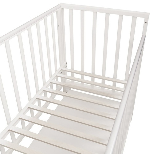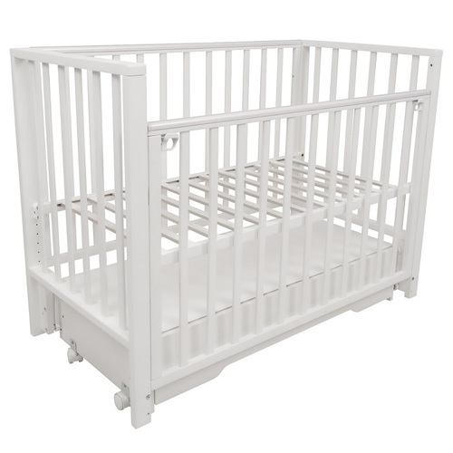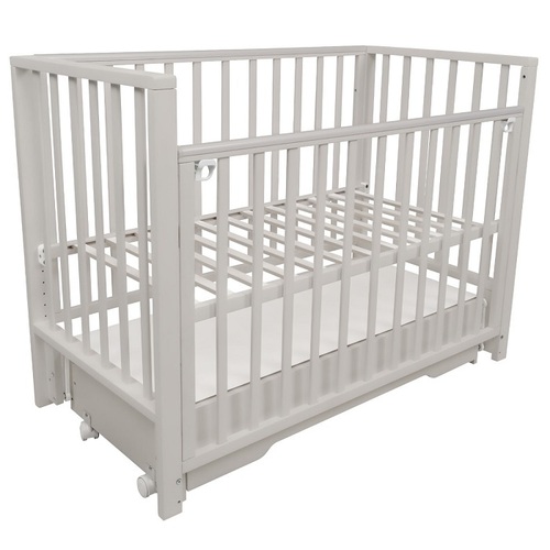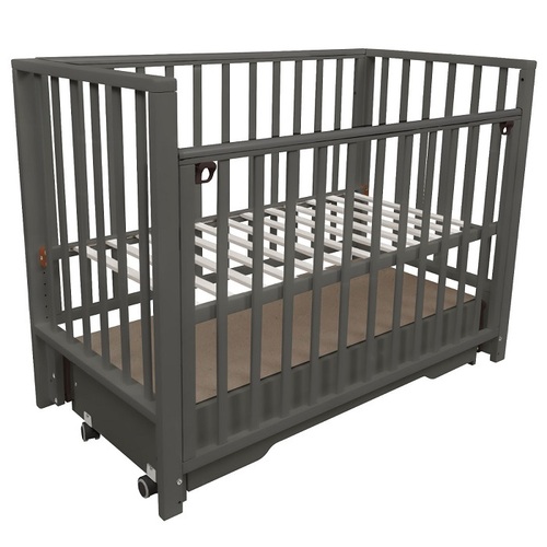 Передний бортик - автостенка. С помощью нажатия 2 курков вы сможете легко отрегулировать бортик по высоте или быстро снять передний бортик. Без бортика кроватку можно использовать как диванчик для уже подросшего ребенка или как приставную кроватку для совместного ночного сна.