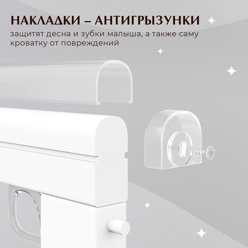 - ПВХ накладки с уголками. Защитят детские зубки от соприкосновения с деревом. Уголки защитят кроватку от царапин при снятии переднего бортика.