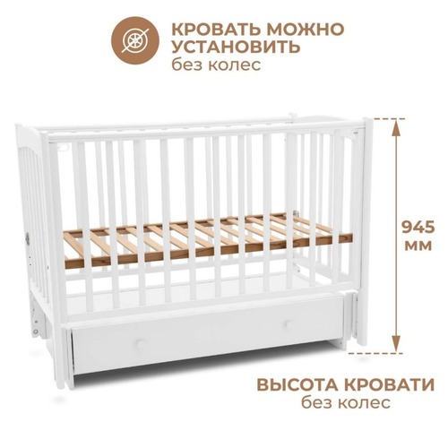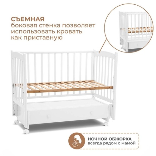 Детская кроватка Woodix Colibri Go с универсальным маятником – создана с заботой о ребёнке и родителях.