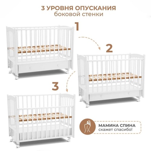 - Три положения уровня ложе позволит выбрать оптимальную глубину кроватки
