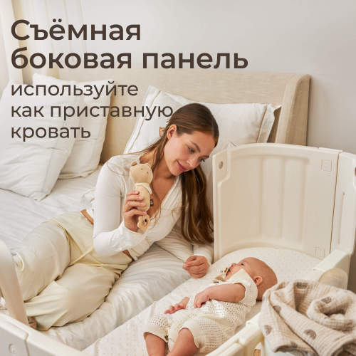 Особое внимание уделено конструкции изделия: съемная боковая панель позволяет легко преобразовать кроватку в приставную кровать, создавая дополнительные удобства для совместного сна мамы и младенца. Габариты кроватки для детей составляют 123 х 68 х 92 см, обеспечивая достаточное пространство для размещения даже в небольших помещениях. Размер спального места оптимален для полноценного отдыха ребенка и составляет 117 х 63 см, выдерживая максимальную нагрузку до 50 кг.