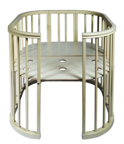 Круглая кроватка-трансформер Incanto Эмили 8 в 1 оригинальная кроватка из березы для ребенка с рождения до примерно 3 лет. с интересным функционалом. Кроватка имеет необычную форму (более квадратную) и достаточно нестандартные размеры для таких моделей. Для новорожденного ребенка предусмотрена кровать -колыбелька 100*60 см., а для подросшего ребенка 100*90 см. При этом модель может трансформироваться в 2 приставных кроватки (необходимое крепление в комплекте). Когда ребенок подрастет кровать трансформируется в диванчик (передняя стенка кровати снимается) , а в дальнейшем кровать можно собрать в удобный столик-парту или 2 кресла для занятий и игр.