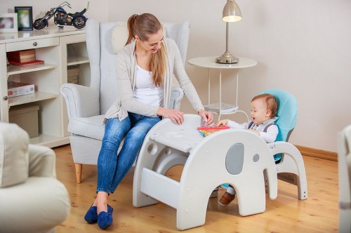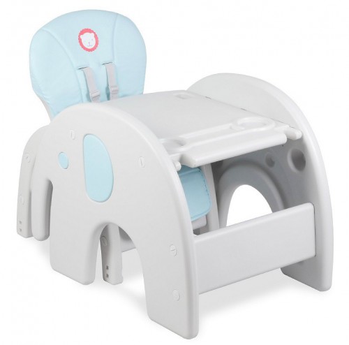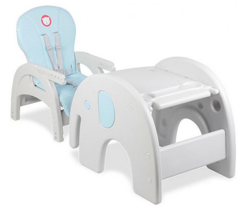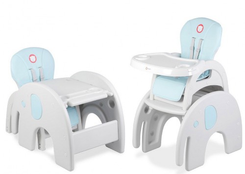 Модель выполнена в виде слоника и имеет приятную цветовую гамму. Она регулируется по высоте. Предусмотрена также удобная регулировка столешницы. Не имеет острых углов и травмоопасных элементов. Пяти точечные ремни обеспечивают полную безопасность. Максимально допустимый вес – до пятидесяти килограммов. Рассчитан на длительную эксплуатацию, быстро складывается и раскладывается. Хорошо моется и очищается от всех загрязнений