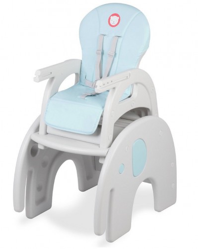 Лионело Эли- стул трансформер, может функционировать как в качестве высокого стула для кормления и комбинации стул + стол. Предназначено для детей в возрасте от 6 месяцев до 6 лет., стул меняется и растет вместе с вашим ребенком. Стол выполнен в виде слоника, приятная цветовая гамма Характеристики Lionelo Eli