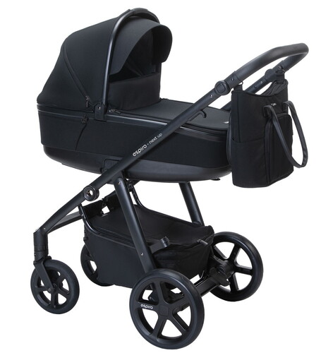 Espiro Next Up Black 2 в 1 — полноразмерная многофункциональная коляска для новорожденных, подходящая для любой местности, дороги и погоды.