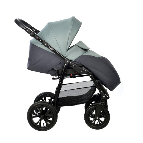 Коляска оснащена легкой рамой и надежными надувными колесами. Колеса с амортизаторами, которые можно регулировать, справятся с любыми дорогами и бездорожьем. Такая модель подойдет не только для города, но и загородом, проедет по песку, камням, снегу. Регулируемая ручка для родителей и передние поворотные колеса подарят легкость в управлении моделью.