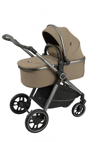Элегантный внешний вид сочетается с легкостью и компактностью, что облегчает транспортировку и хранение. Модульная система позволяет быстро менять конфигурацию, а эргономичная ручка с экокожей обеспечивает удобство управления даже на длительных прогулках. В холодное время года в комплект входят муфты для рук, которые легко крепятся на ручку.