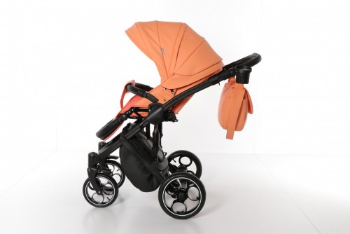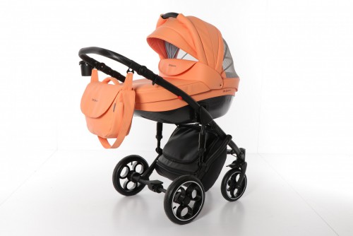 В комплекте с коляской идёт силиконовый дождевик, москитная сетка, универсальный подстаканник, корзина для покупок с объёмной сумкой на молнии, сумка для мамы, кокосовый матрасик, муфта для рук из эко кожи и чехлы на колёса.