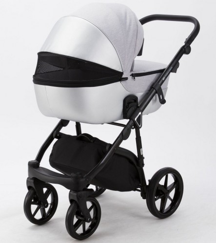 Корпус люльки пластиковый, обтянут эко-кожей. В донышко люльки встроено регулируемое вентиляционное окно. Люлька оборудована регулируемым по высоте подголовником, который для удобства регулируется с внешней стороны.