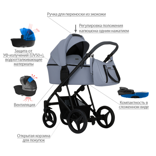 Обивка коляски: водоотталкивающая, съемная, с УФ-защитой 50+.