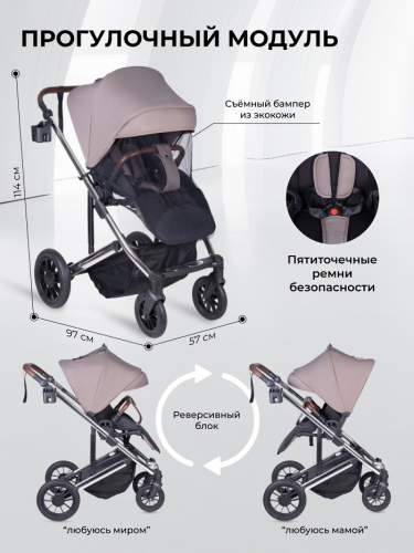 Коляска Farfello Sola Trio Comfort 3 в 1 (Фарфелло Сола Трио Комфорт) стильная и удобная коляска с очень большой компектацией. Это универсальная коляска с тремя съемными модулями: люлька для новорожденного, автокресло для малыша до года, прогулочный блок для ребенка от 6 месяцев до 3 лет. Так же с коляской идут руковички для прохладной погоды!, стильный рюкзачок для мамы, дождевик и подстаканник. А как же москитная сетка спросите вы? А она уже встроена в капюшон. Вы сможете гулять с коляской, путешествовать, безопасно перевозить ребенка в машине и быть готовым к любой непогоде.