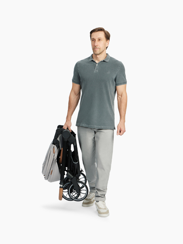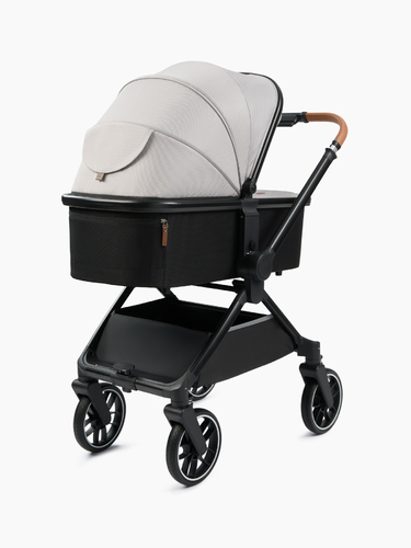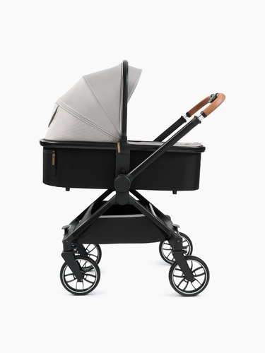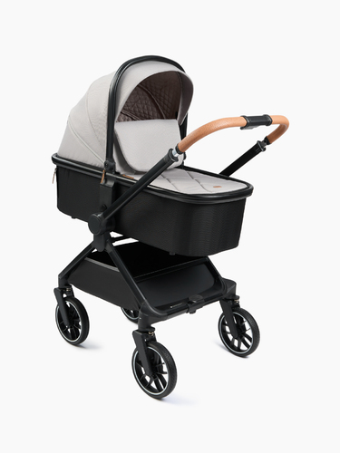 Управление одной рукой делает эксплуатацию простой и комфортной, а перекидная и регулируемая по высоте рукоятка позволяет менять положение ребенка в считанные секунды. Декоративные элементы из экокожи придают модели элегантный внешний вид. Благодаря амортизационной системе и надежным колесам коляска легко справляется даже с неровной дорогой.