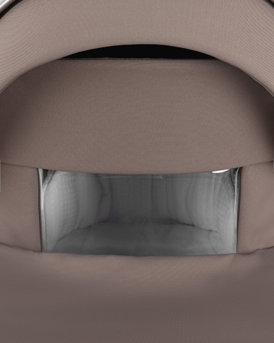Капор люльки оборудован ручкой для переноски, имеется съемный козырек, дополнительная секция, климатическое окно под молнией в корпусе люльки и в капюшоне.