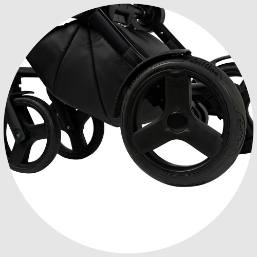 Рама коляски изготовлена из прочного и легкого алюминия. Система EASY CLICK позволяем в однокасание установить люльку или прогулочный блок на раму. Тормозная система PARK SYSTEM надежно зафиксирует коляску.