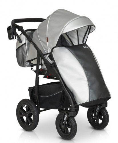 Рама коляски очень компактная и удобная. Она оснащена большими надувными колесами и регулируемой амортизацией, которая сгладит все неровности дороги и подарит ребенку комфортный сон. Модель управляется легко за счет регулируемой по высоте ручки и передним поворотным колесам с блокировкой. Большая комплектация позволит комфортно гулять в любую погоду и не докупать ни чего дополнительно.