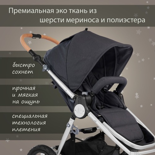 В соответствии с экологичным производством компании Bumbleride, ручка Era выполнена из натуральной пробки - прочного, приятного и теплого в зимнее время, нетоксичного, водонепроницаемого и антимикробного материала. Эко-ткани Bumbleride изготовлены из переработанного ПЭТ, не содержат вредных химических веществ и сертифицированы по международному стандарту OEKO-TEX. Водостойкая пропитка не содержит химикаты PFAS, известными как "вечные химикаты.