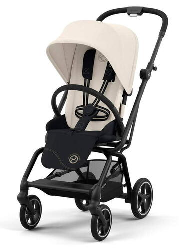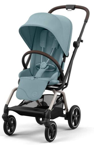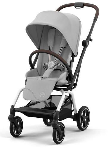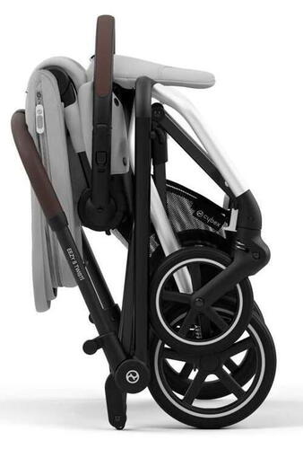 Шасси прогулочной коляски Cybex Eezy S Twist+2 изготовлено из авиационного алюминия и весит менее 10 кг. Оно имеет ширину 45 см, что позволяет без проблем проезжать в любые двери или лифт. Коляска компактно складывается буквально одним движением руки, в сложенном виде стоит у ног родителей, опираясь на специальные ножки на раме.