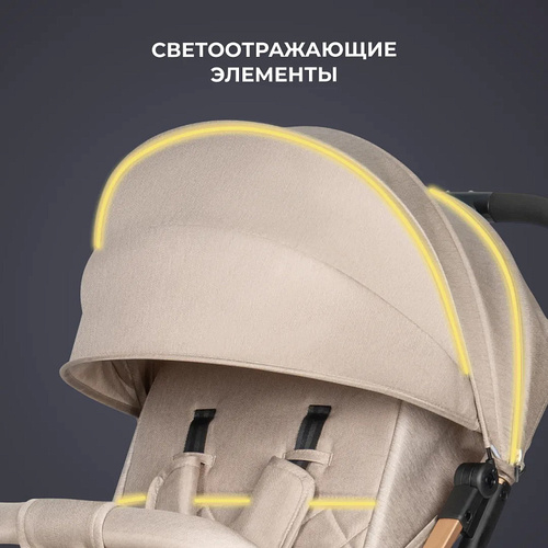 В комплекте: распашной полог для ног со светоотражающими вставками, подстаканник, каркасная москитная сетка и сумка-чехол для коляски.
