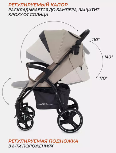 Дополнительная особенность модели — множество положений подножки, что обеспечивает комфорт для ребёнка во время прогулки.
