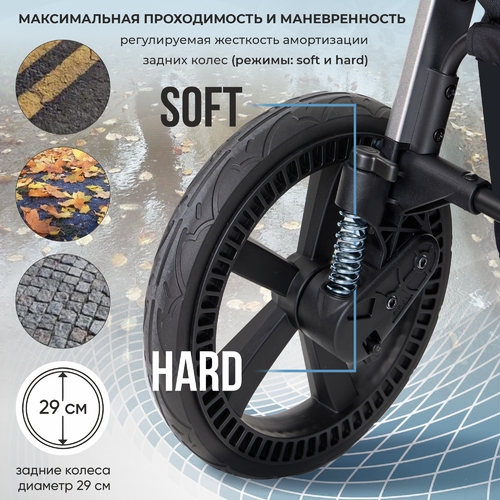 регулируемая жесткость амортизации задних колес (режимы: soft и hard)