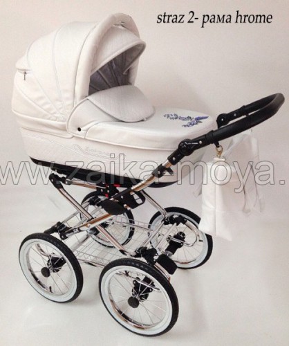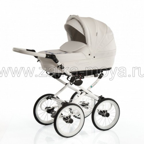 Коляска Esperanza Classic Classic Le Straz - стильная классическая модная коляска. Снаружи коляска обтянута эко-кожей, украшенная сверкающими стразами . Эко - кожа - это высококачественная искусственная кожа, выполненная из гиппоалергенных материалов.