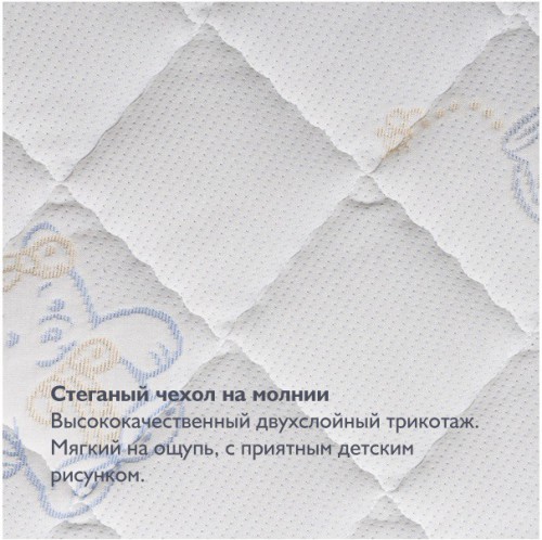Универсальный беспружинный матрас Eco Life с различной степенью жесткости сторон. Основной наполнитель – упругая монолитная плита из экологически чистого, высокоплотного холлкона, который хорошо сберегает тепло, не накапливает статического напряжения, не боится влаги, не поддается слеживанию. Настил из латексированной кокосовой койры на одной стороне делает ее умеренно жесткой, рекомендуется новорожденным. Слой из натурального латекса на другой, более мягкой стороне, придает матрасу комфорт и анатомичность, рекомендуется малышам старше года. Чехол из прочного, высококачественного стеганого трикотажа создает нежные тактильные ощущения. Удобный и практичный матрас для детей от 0 до 3 лет.