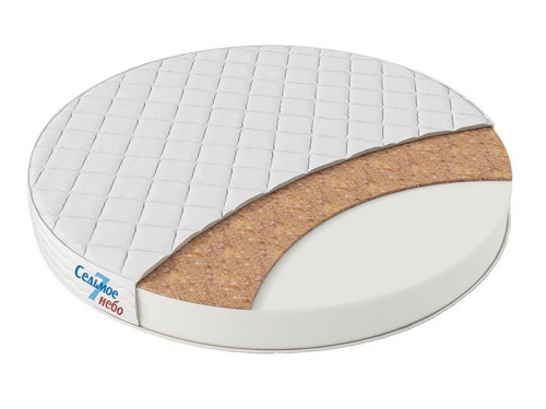Матрас в круглую кровать Седьмое небо Принц Классик ортофайбер+кокос Круглый матрас используется только в люльке, для малышей до 6 месяцев. В этом возрасте малышу рекомендуют спать только на твердой поверхности, поэтому матрас с кокосом с одной стороны подойдет лучше всего. Однако, своим небольшим весом, малыш не сможет продавить матрас без кокоса с основой высокой плотности, как у нас, поэтому и такой вариант тоже подходит.