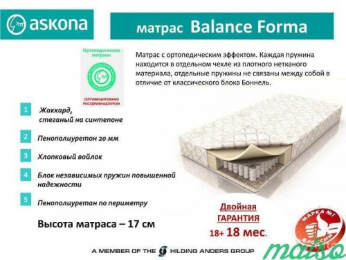 Матрас Askona Balance Forma,с независимым пружинным блоком 800х2000 (Аскона Баланс Форма) пружинный матрас с анатомическим эффектом.