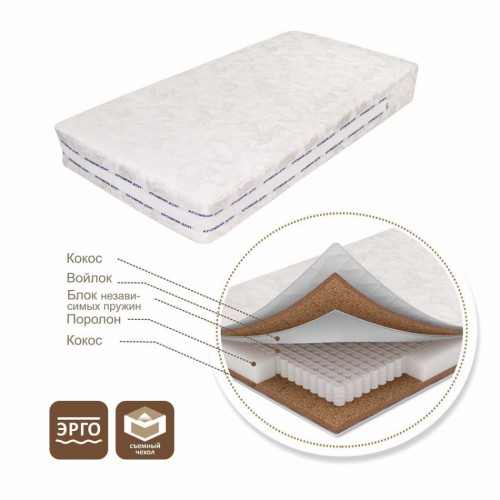 Жесткий наполнитель - кокос с латексом с обеих сторон. Зачем? – педиатры рекомендуют выкладывать детей до 3-х месяцев жесткий матрас для сна. Цель: профилактика гипер-тонуса мышц.