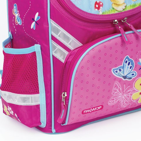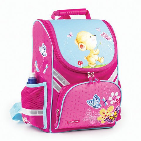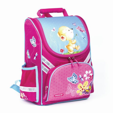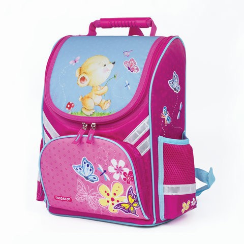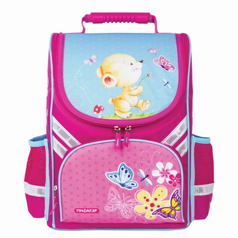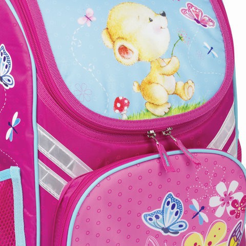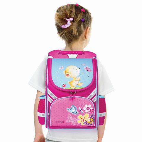 Ранец для учениц начальной школы Пифагор Мишка с бабочкой, 36х28х15 см, арт. 227931