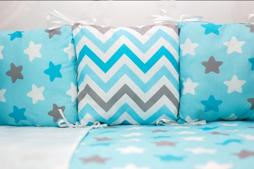 - Комплект изготовлен из высококачественного 100% хлопка и антибактериального, гипоаллергенного, дышащего наполнителя в одеяле, подушке и защитных бортах – холлофайбера.