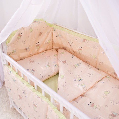 Комплект постельного белья выполнен в стандартных детских размерах для того, чтобы вы спокойно могли менять одеяльце в зависимости от времени года. Простынь, для удобства использования сделана на резинке.
