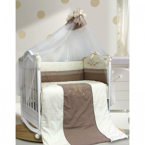 Комплект в кроватку Labeille Arabella 7 предметов Стильный дизайн, безопасные натуральные материалы, сочетание мягких и спокойных пастельных тонов – все это роскошный по дизайну и качеству комплект постельного белья в кроватку "Arabella".