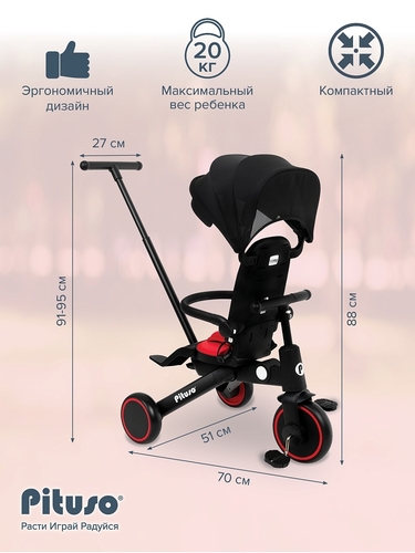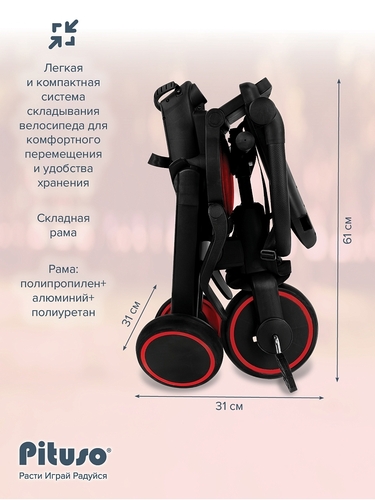 Складной трехколесный велосипед Pituso Leve Pro, очень легкий, компактный, современный и маневренный.