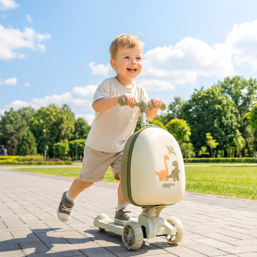 Детский трехколесный самокат UNIX Kids с чемоданом - рюкзаком в комплекте разработан специально для юных райдеров (девочек и мальчиков), любящих активно проводить свободное время на улице и получать удовольствие от катания.