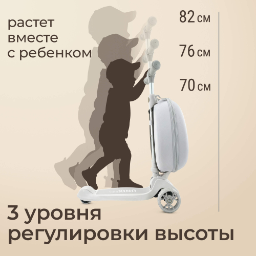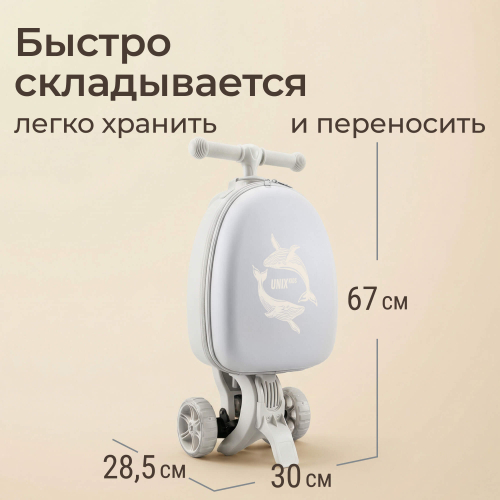 Детский трехколесный самокат UNIX Kids с чемоданом - рюкзаком в комплекте разработан специально для юных райдеров (девочек и мальчиков), любящих активно проводить свободное время на улице и получать удовольствие от катания.