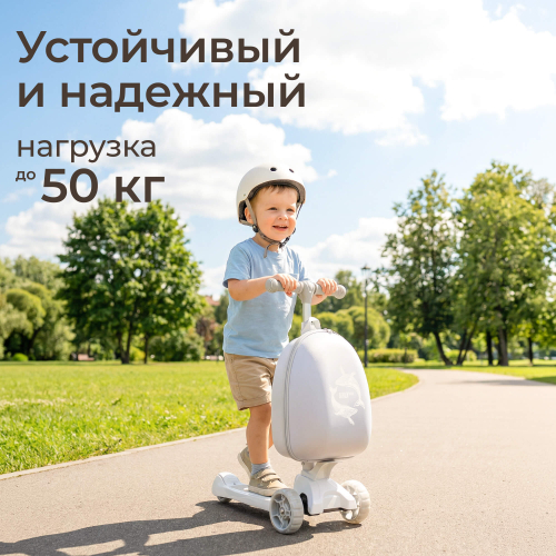 - Особенности:нагрузка на ранец до 15 кг, легко крепится к самокату, поворот наклоном руля, ножной тормоз, нескользящие ручки