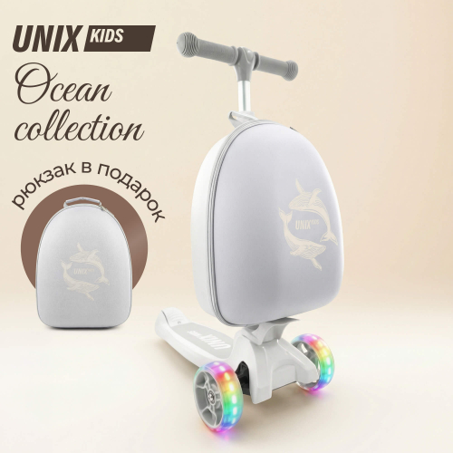 Самокат UNIX Kids Backpack Ocean / Океан с рюкзаком серый