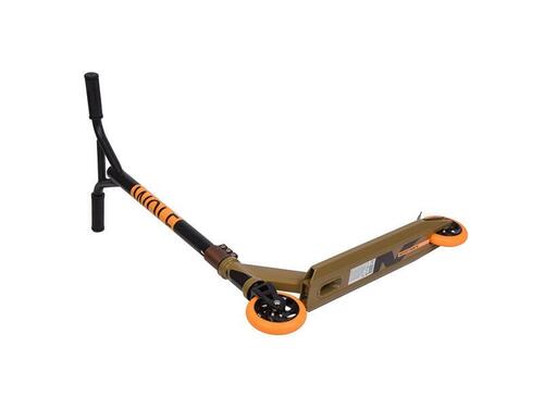 Прочная передняя вилка и усиленная платформа обеспечивают необходимую жёсткость для того, чтобы выдержать нагрузки от ударов и падений при выполнении трюков. Алюминиевые колёса с полиуретановой рабочей поверхностью диаметром 120 мм устойчивы к стиранию, обеспечивают бесшумное и плавное катание.