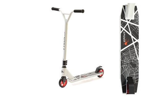 Трюковой самокат Trix Spider, 110 мм для детей от 5 и взрослых. Имеет усиленную нескладную алюминиевую раму и руль без регулировок по высоте для максимальной прочности конструкции которая требуется при выполнении разнообразных прыжков и трюков.